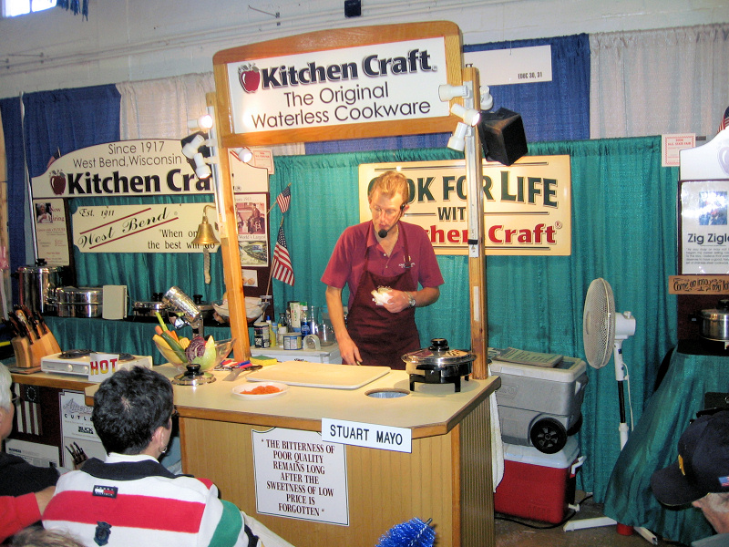 10/20: A salesman demonstrating a method to prepare food.