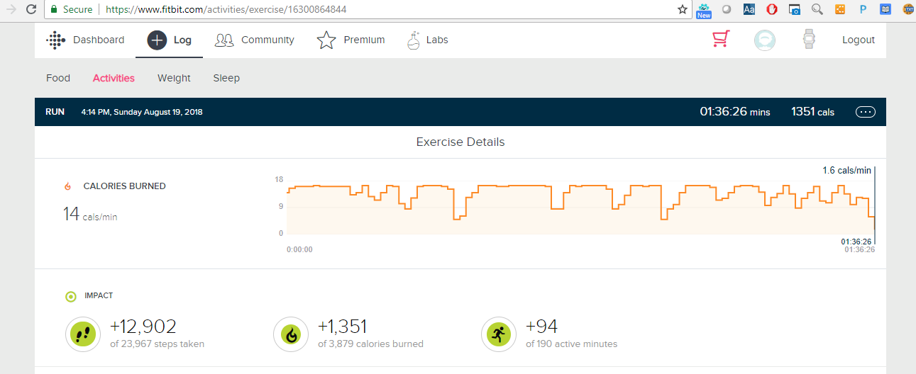 By Guus , 19 August 2018 With my parents here, and the kids asleep, it was easy to go for a long run. 96 minutes, not bad. Ran to past Ohio Street on the W&OD, next time I might push it to East Falls Church.