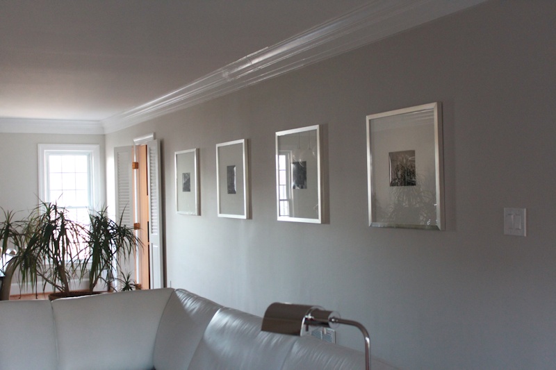 Last night we hung four picture frames on the long wall in our living room.