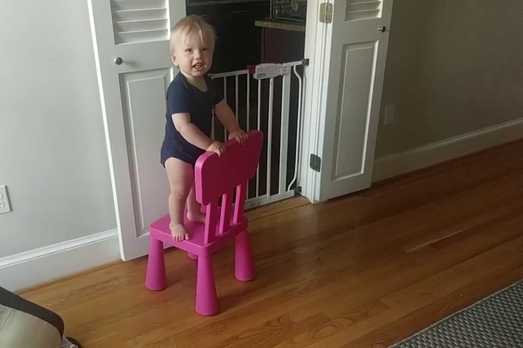 At the other hand, the pink chairs definitely need to go. Adrian learned how to climb on them.