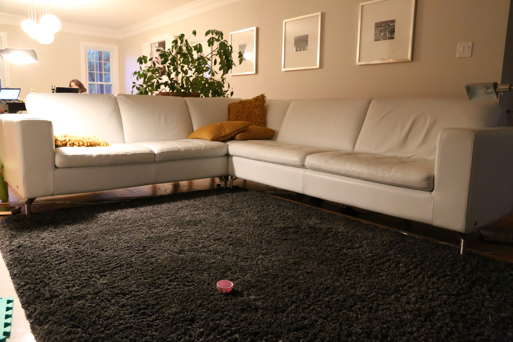 The coffee table was one of the first things to go -- the boys used to play on the carpet when they couldn't crawl yet and it's still a favorite play area. We had the coffee table behind the sofa for a long time until the guys managed to climb onto it.