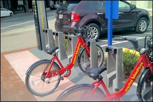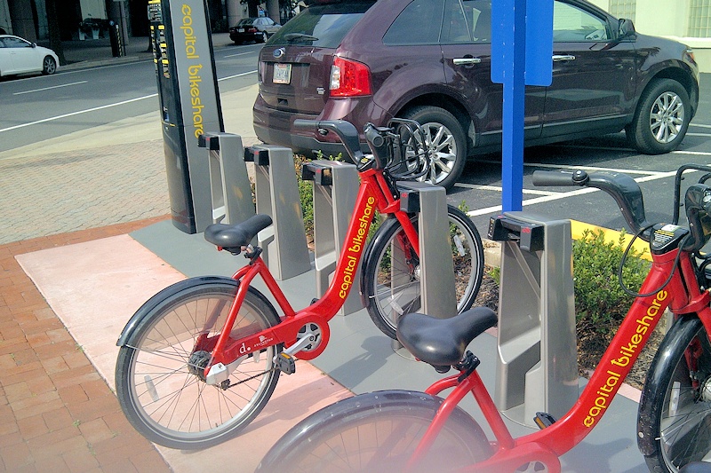 My own bike wasn't ready yet so I've used the nice BikeShare system for a few days. It works great. I can pick up my pick around the corner from our apartment building, bicycle for 13 minutes and then park it right near my work in Ballston.
