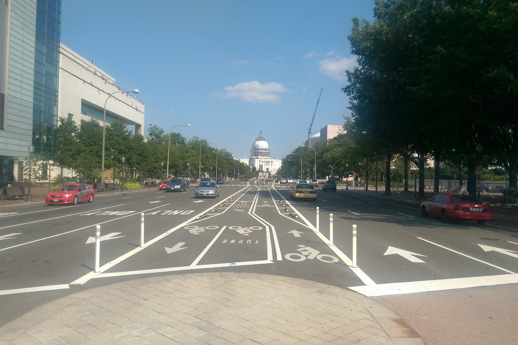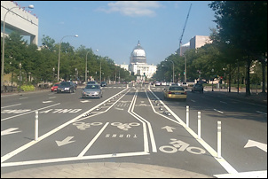 The infrastructure in D.C. is getting nicer every year. I positively loved the bicycle lanes on Pennsylvania Avenue. They are protected from traffic and provide a great connection from the Capitol to the White House. It's also very symbolic that one of the best known streets in the United States now has bike lanes. Near Union Station they built a wonderful bicycle track on a street that I rode in 2006 when I said: "On my way back it was really cool to approach Union Station from the north, although traffic was pretty crazy there". Clearly, that has now dramatically improved.