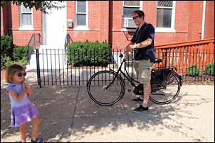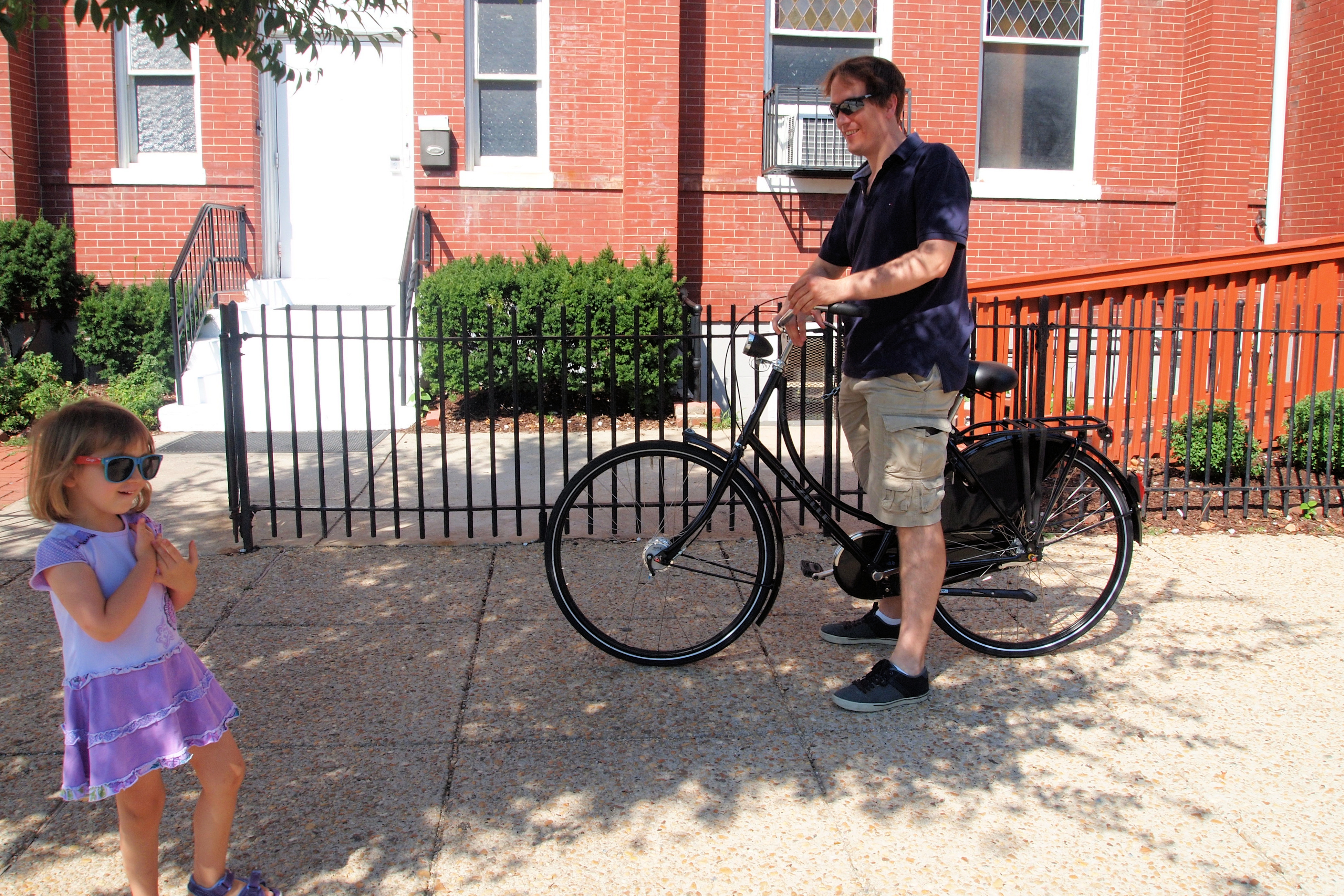 Two weeks ago I went to a bicycle store on H Street to take a second look at a bicycle that I had seen there. Jaap was there also and it was nice to get his advice. Nora looked around at everything and I had her sit on the Dutch bike for a little bit.