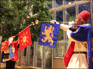 Mrs. Van Thiel, who was portraying Catherine of Cleves, was excited to be in New York City. "Tomorrow we'll do a photo shoot on Times Square, 5th Avenue etc. I've been in the costume for 10 hours already today but Tuesday we'll have some time off; I hope to be able to see Ellis Island".
