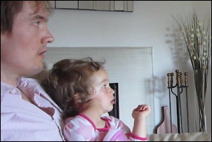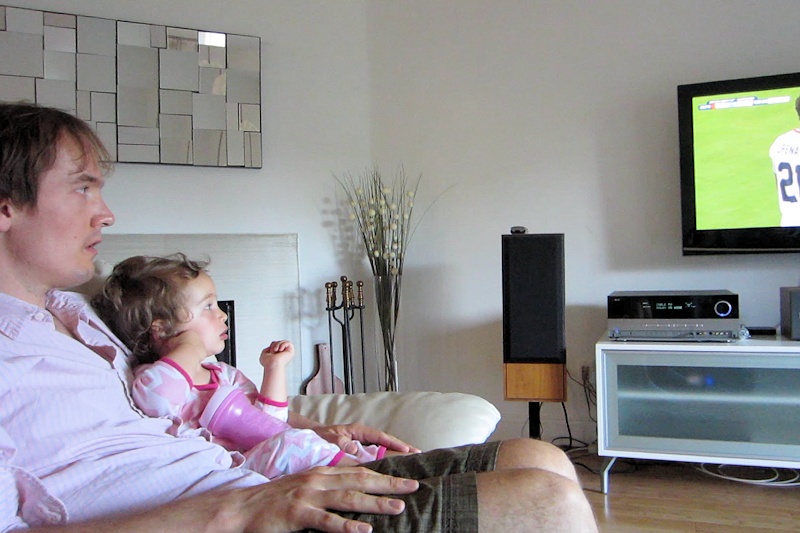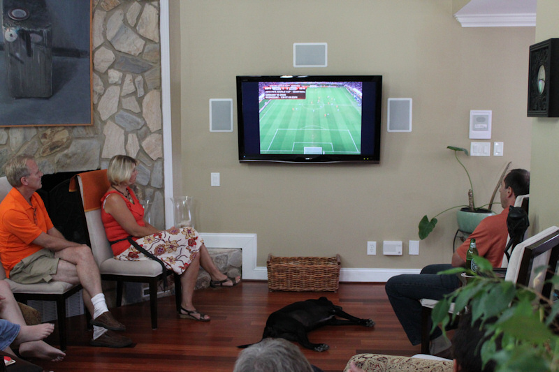 Saturday we watched the game between the Netherlands and Costa Rico from Secaucus. When Nora woke up from her nap she watched the last hour of the game on my lap.