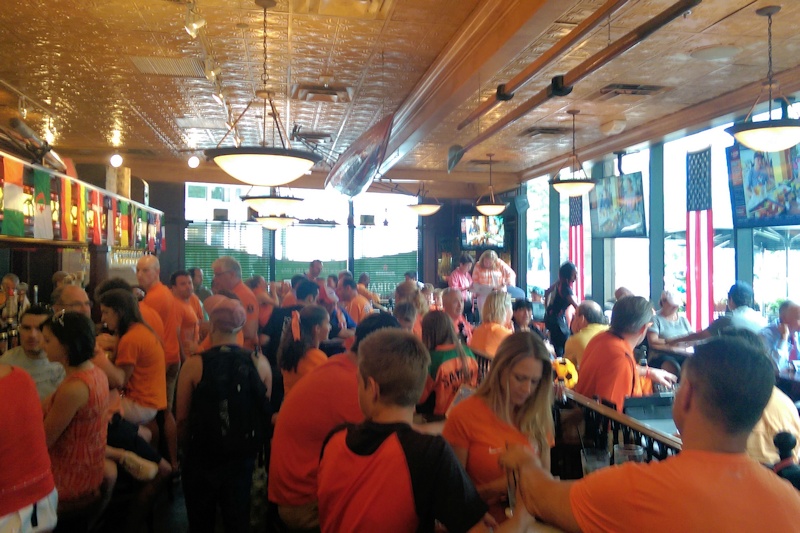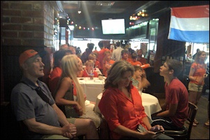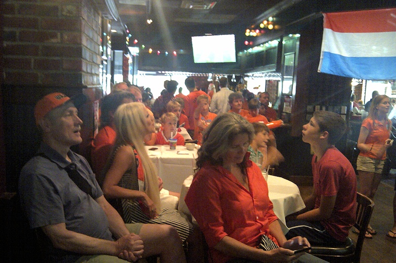 The kids and I went to Elephant & Castle in DC to watch the women's World Cup final, a game between USA and the Netherlands. Our loyalties are divided, obviously, but we dressed up in orange and joined the Dutch crowd cheering for Holland.