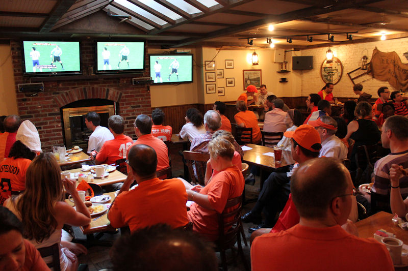 We went with a a couple of friends to Woody's Tavern in Cary, where about 40 Dutch people were watching the game together. It was nice to meet Dutch people in the area, and to watch the game together. Petra was there, and we met Maarten for the first time as well. Two years ago in the World Cup I watched the elimination of the Dutch team against Portugal in a bar in DC.