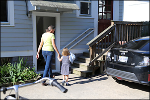 On the way to school we practiced a little bit how to talk about her summer -- she wasn't quite confident about her English after such a long summer, it seems.