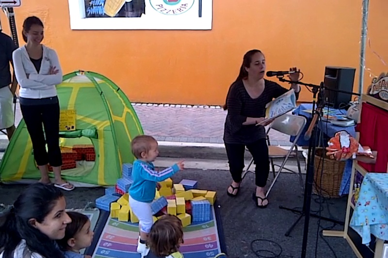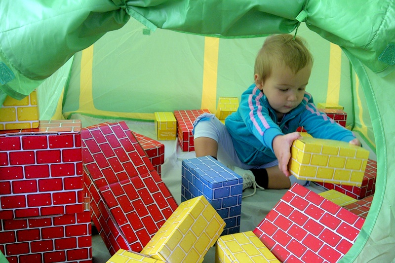 Playing with blocks.