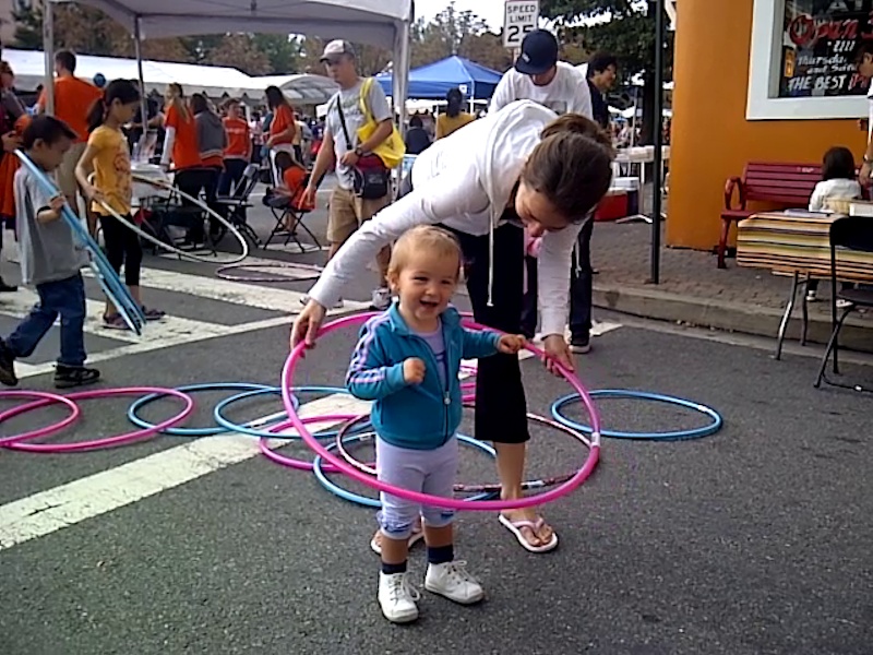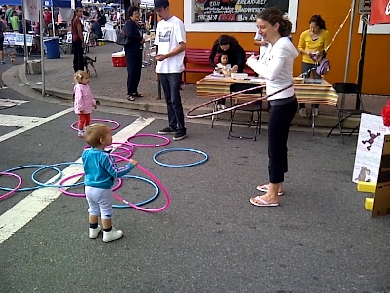...and then trying the hula hoop.