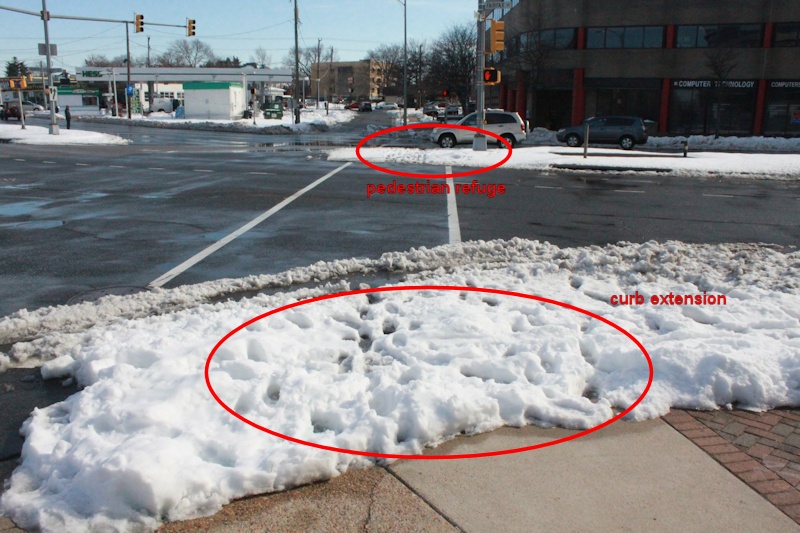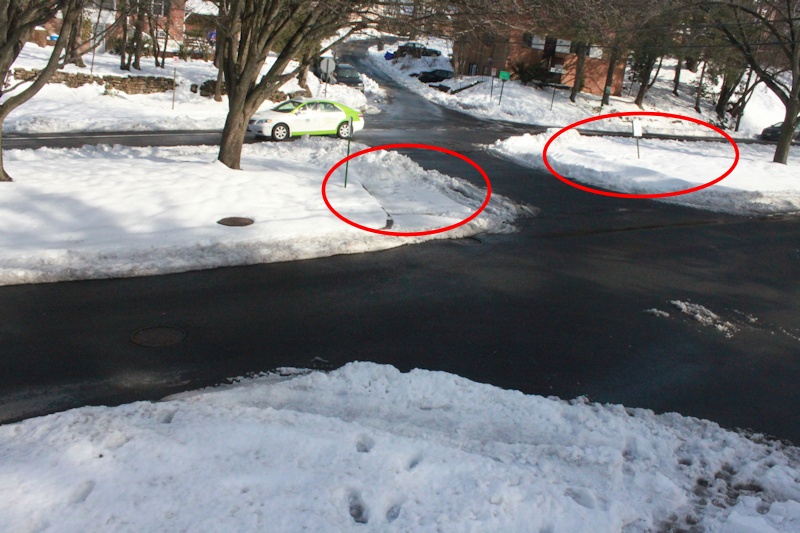The website Greater Greater Washington.org asked for pictures of so-called "sneckdowns". Those are photo's that show where cars don't use space on an intersection. Space that could be used for pedestrians to make it safer and easier to cross the road.
