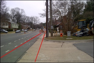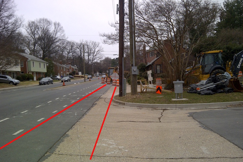 This picture is from March 23rd. The sidewalk is being created where my red marking is.