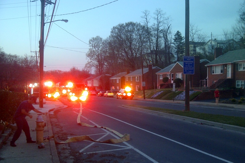 There apparently was a report of a bush fire near one of the houses opposites 14th Street, maybe the result of a BBQ and strong wind. The Arlington County fire department and police came out in full force and there were some 15 vehicles. Thankfully the fire was out very quickly.